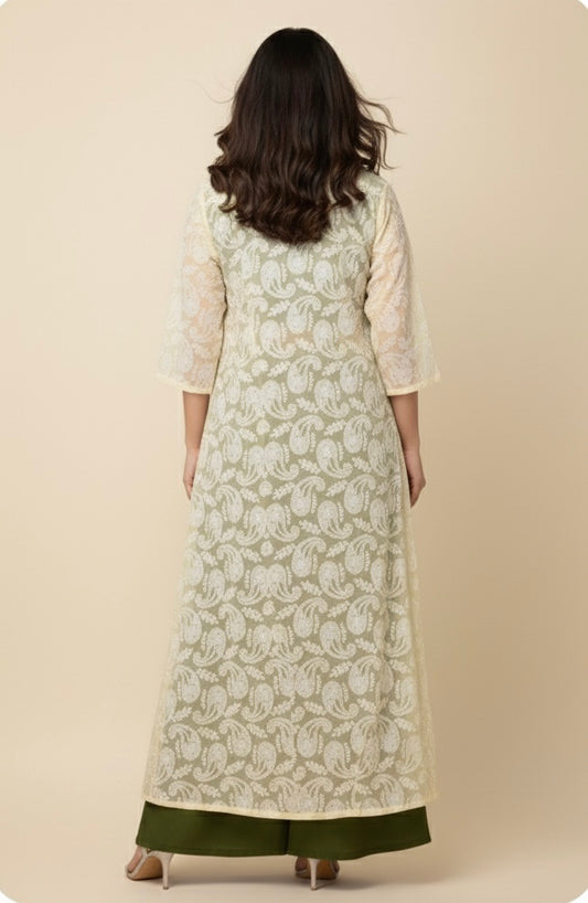 YELLOW PALLAZO SET WITH CHICKENKARI JACKET