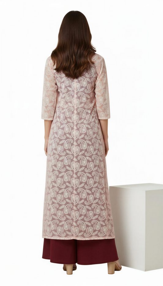 WINE PALLAZO SET WITH CHICKENKARI JACKET